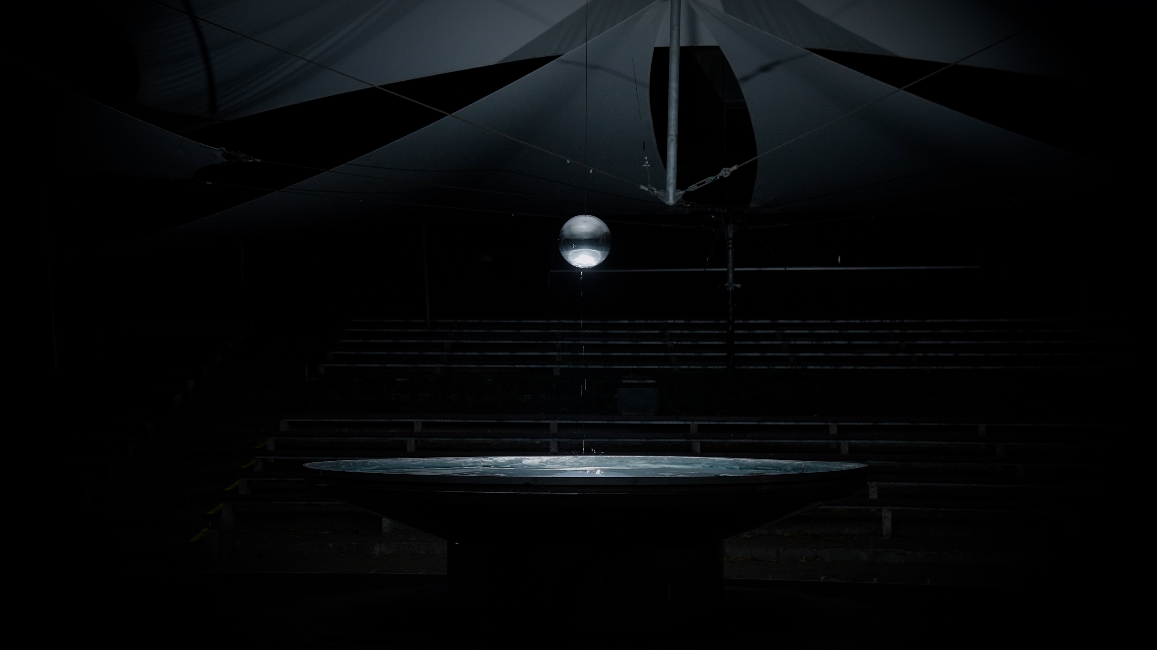 Each fall is unique: a suspended rupture in which the unconscious stirs and those present are confronted with impermanence. The irregular rhythm of falling and stillness renders time elastic, moments and memory collapsing into one another. Drawing on Jungian ideas of the shadow self, the sphere becomes a mirror of what lies beneath the surface, inviting confrontation with uncertainty, fragility and sudden change. This ritual of tension and release becomes a meditation on the exquisite beauty of abrupt transformation and the fleeting nature of existence.